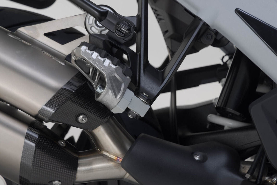 Sada nerezových enduro stupaček SW-Motech pro spolujezdce s možností snížení a posunem dopředu/dozadu a nastavení úhlu sklonu pro R1300GS 2023+