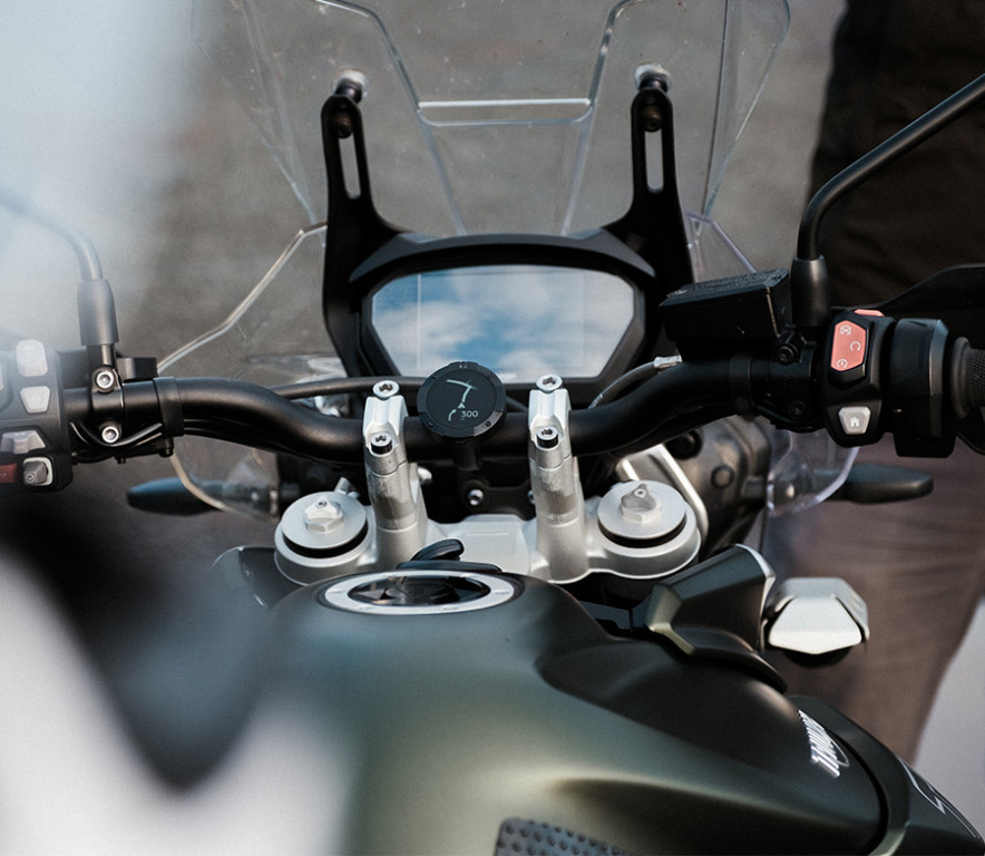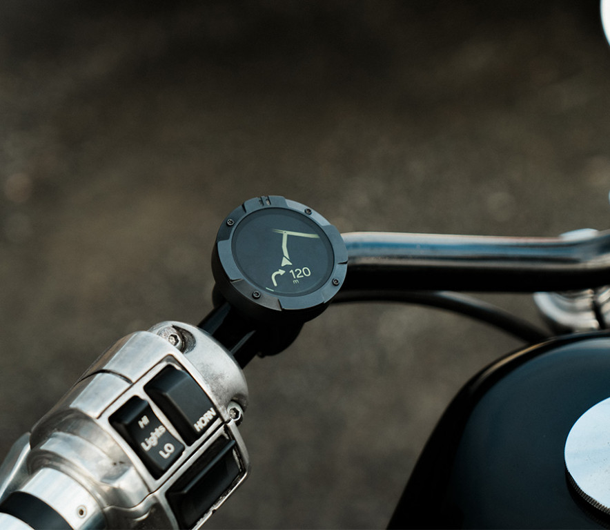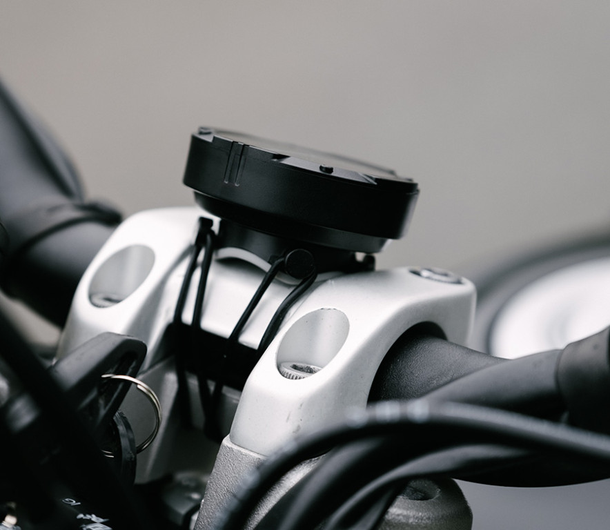 Minimalistická navigace na motorku s plastovým rámečkem