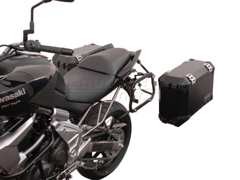 Nosič bočních kufrů SW-MOTECh system Quick-lock. Uchycení na bajonetové rychloupínáky,znamená, že tyto nosiče můžete velmi rychle a pohodlně oddělat a nemusíte s nimi jezdit stále. Na motocyklu vám zůstanou jen nenápadné fixační body. K uzamčení tohoto nosiče doporučujeme přiobjednat ještě zámky nosičů QLS.00.046.10100/B, které zabrání odcizení nosičů.