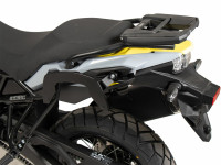 Nosič horního kufru Easyrack v černé barvě pro Suzuki V-Strom 800 DE (2023-) je praktickým doplňkem vašeho motocyklu pro vytvoření dalšího úložného prostoru. Tato sada obsahuje připojovací sadu specifickou pro daný model a adaptér Easyrack, které byly speciálně vyvinuty pro bezpečné připevnění horních kufrů Hepco&Becker nebo měkkých zavazadel. Nosič horního kufru Easyrack byl speciálně vyvinut pro modely Suzuki V-Strom 800 DE od roku 2023. Bezproblémově zapadne do celkového vzhledu vašeho motocyklu a je vyroben z vysoce kvalitního hliníku v kombinaci s robustním ocelovým základním nosičem. Tato konstrukce zajišťuje nejen vysokou pevnost, ale také nabízí atraktivní vzhled. Dodatečné upevňovací body umožňují bezpečné připevnění popruhů na zavazadla pro bezpečné uchycení rolí zavazadel nebo jiného nákladu. Upozorňujeme, že tento nosič horních kufrů není vhodný pro horní kufry s univerzální plastovou deskou. Deska adaptéru je určena výhradně pro horní kufry nebo měkká zavazadla Hepco&Becker. Součástí dodávky je nosič horního kufru Easyrack specifický pro daný model, montážní sada a podrobný montážní návod. Další adaptéry pro montáž horního kufru nejsou potřeba. Easyrack funguje podobně jako nosič horního kufru Alurack s tím rozdílem, že držák pro držení horního kufru lze při nepoužívání složit, zatímco držák Aluracku směřuje pevně nahoru. Základní podpěra Easyrack specifická pro daný model je identická jako u Aluracku. Nosič zavazadel nevyžaduje obecnou provozní licenci (ABE) ani registraci. Doporučená maximální nosnost je 5 kg. Věnujte prosím pozornost informacím specifickým pro daný model v návodu k montáži a také informacím poskytnutým výrobcem motocyklu. Těžká zavazadla se doporučuje přepravovat nejlépe v bočních kufrech nebo v tankvaku. Doporučená maximální rychlost pro nosič topcase Easyrack je 130 km/h, aby byla zajištěna bezpečná cesta. Vezměte prosím na vědomí, že nosič zavazadel byl vyvinut pro standardní stav vašeho stroje a nebyl testován s příslušenstvím, jako jsou výfukové systémy, držáky SPZ nebo jiné indikátory.