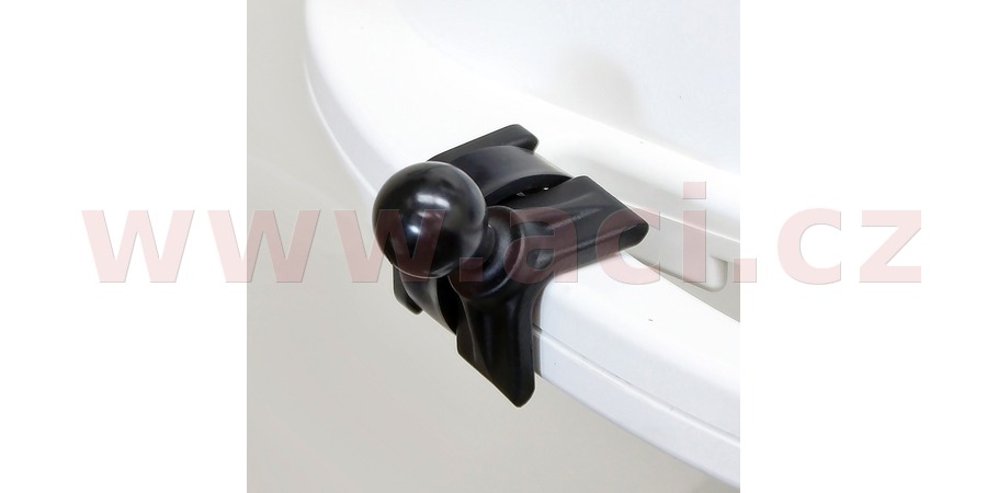 Úchyt s kulovým čepem, umístěným v pravém úhlu na základně ve tvaru V a s pojistným kovovým páskem na motorku nebo skútr, kolo, invalidní vozík nebo jednoduše jakoukoliv trubku o průměru 25,4 - 53,34 mm. Patentovaný kulový čep je vyroben z velmi kvalitní pryže tak, aby tlumil nárazy a vibrace, které by jinak byly přenášeny na upevněné elektronické zařízení.
