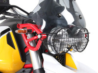 Náš černý kryt lampy pro Moto Guzzi V 85 TT (2019-) nabízí nejen vynikající ochranu pro váš světlomet, ale také dodává vašemu motocyklu robustní a individuální vzhled. Tento kryt lampy byl speciálně vyvinut pro modely Moto Guzzi V 85 TT od roku 2019 a perfektně padne na váš motocykl. Kryt lampy chrání světlomet před odletujícími kamínky, špínou, hmyzem a dalšími vnějšími vlivy, které se mohou vyskytnout během vašich jízd. Zároveň dává vašemu Moto Guzzi V 85 TT výrazný a individuální styl, který dokonale zapadá do jeho charakteru. Instalace je jednoduchá a nekomplikovaná, protože kryt lampy je připevněn ke stávajícím upevňovacím bodům na vašem motocyklu. Je vyroben z vysoce kvalitní oceli a má odolný černý povlak, který chrání proti korozi a zajišťuje dlouhou životnost. Vezměte prosím na vědomí, že tento kryt lampy je dodáván bez schválení TÜV. Při používání se řiďte platnými místními předpisy a zákony.