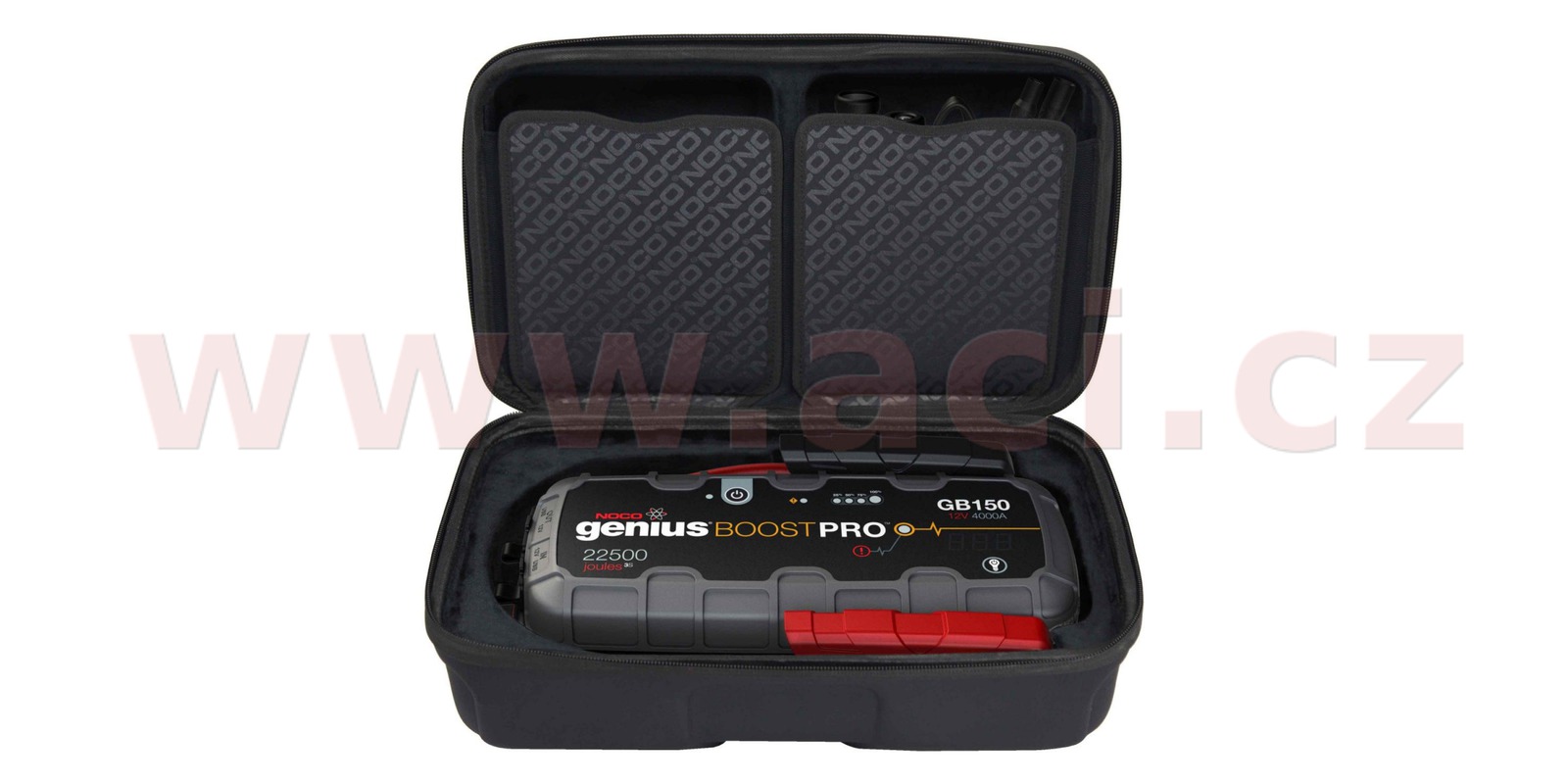 Tvarovaný interiér dokonale zapadne, skladuje a chrání boostery NOCO Genius - GB150. Pouzdro GBC015 má další kapsy pro přenášení příslušných doplňků.