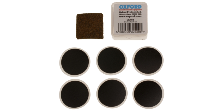 Opravná sada se systémem opravy bez lepidla, určená na opravu pneu kol, mopedů, malých motocyklů, kočárků atp. obsahuje: