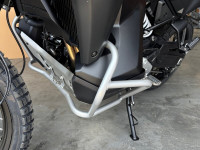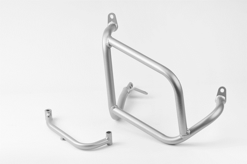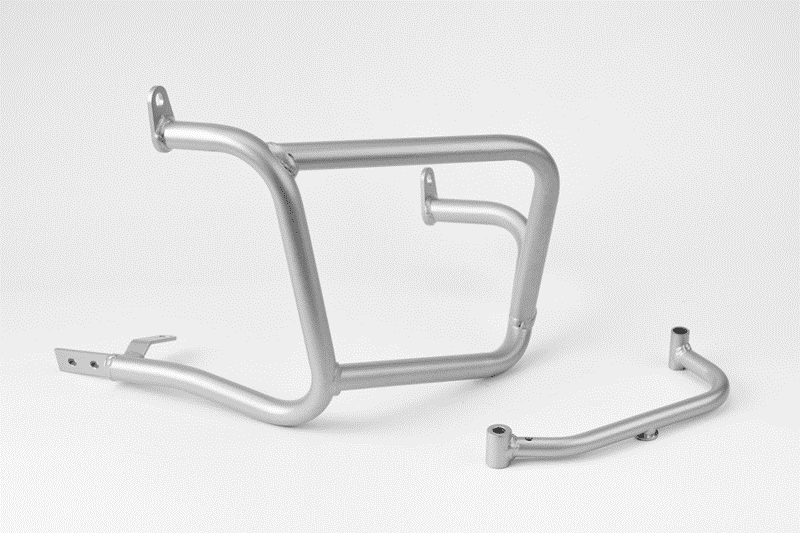 Sada spodních padacích rámů chránících motor motocyklu 800MT‑X z nabídky originálního příslušenství CFMOTO. Pro maximální ochranu stroje doporučujeme dokoupit horní padací rámy.