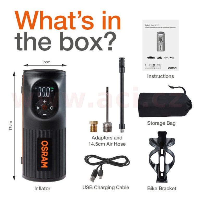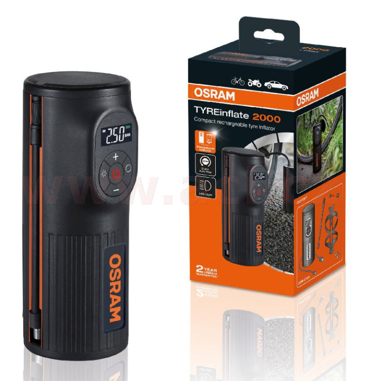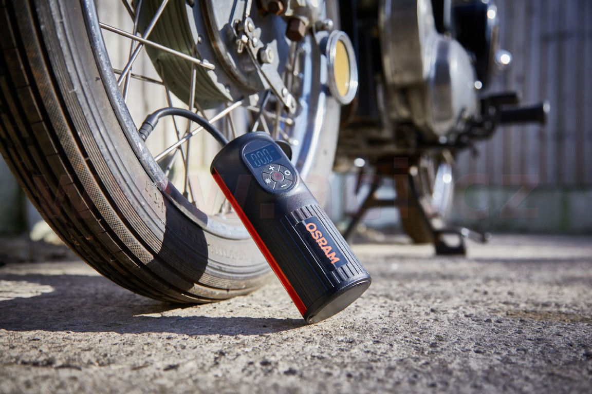 také na nafouknutí pneumatik pro jízdní kola, skútry a motocykly. Díky lehké a kompaktní konstrukci je OSRAM TYREinflate 2000