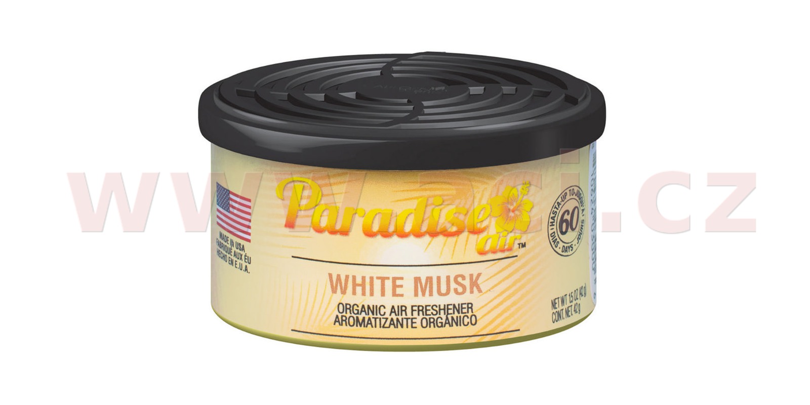 Každá plechovka vůně Paradise Air Organic obsahuje tři bloky lisovaného lnu napuštěného parfémem. Vzhledem k pevné konzistenci osvěžovače Paradise Air také nehrozí – jako u obdobných produktů tvořených nádobkou s parfémem – únik tekutiny následovaný nepříjemným poleptáním interiérových plastů automobilu.