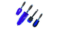 Sada 4 ks kartáčů různých tvarů, vhodných pro čistění motocyklů a jiných dopravních prostředků.