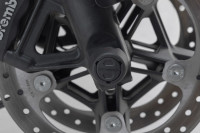 Nárazové podložky přední nápravy vyrobené z otěruvzdorného plastu chrání hnací hřídel před poškozením v případě pádu. Hladký povrch také poskytuje vynikající kluzné vlastnosti. Leštěné logo býka v červené barvě dodá vašemu motocyklu vizuální zvýraznění.