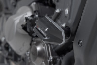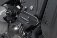 Rámové padací podložky poskytují dodatečnou ochranu v případě pádu. Tvar, povrch a materiál destiček poskytují vynikající kluzné vlastnosti, které snižují poškození motocyklu. Robustní hliníkový montážní držák se snadno instaluje a otěruvzdorné CNC frézované posuvné podložky jsou vyměnitelné.Ochrana rámu, motoru a kapotáže