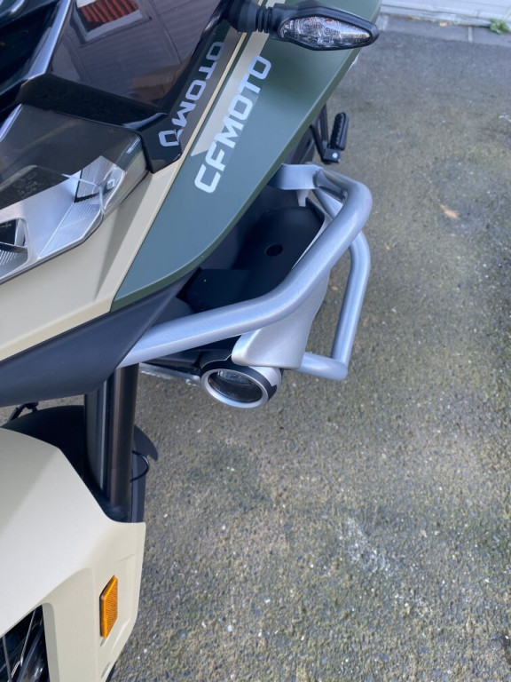Robustní ochranný rám pro CFMOTO 800MT instalovaný místo originálních padáků dodávaných na stroji z výroby. Vyvinutý a vyrobený v České republice, důkladně testovaný, perfektně ochrání motocykl při pádu.