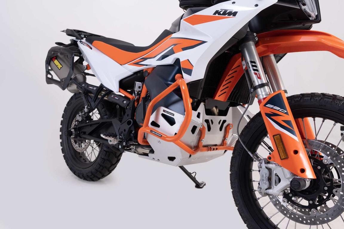 Nabízíme také padací rámy z ocelových trubek o průměru 27 mm s práškovým nástřikem odolným proti povětrnostním vlivům a korozi v oranžové barvě, aby ladily s modelem motocyklu. Povrchová úprava je prováděna v nejmodernějším zařízení v závodě SW-MOTECH v Brně v České republice.