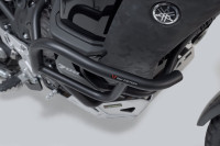 Větší bezpečnost při pádu nebo nárazu: robustní boční padací rám s průměrem trubky 27 mm nabízí spolehlivou ochranu komponentů, nádrže a kapotáže. Ochrana proti pádu speciálně vyvinutá pro model motocyklu je namontována na upevňovacích bodech na původním rámu. Tímto způsobem je dosaženo vysokého stupně stability; Kromě toho není pro montáž nutné žádné svařování ani vrtání. Černý práškový lak chrání konstrukci ocelových trubek před korozí a poškrábáním.