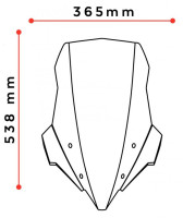 Rozměry (VxŠ): 538 x 365 mm. O 150 mm vyšší než originál (poměřeno na výšku plexi bez ohledu na zakřivení). Tloušťka: 4 mm