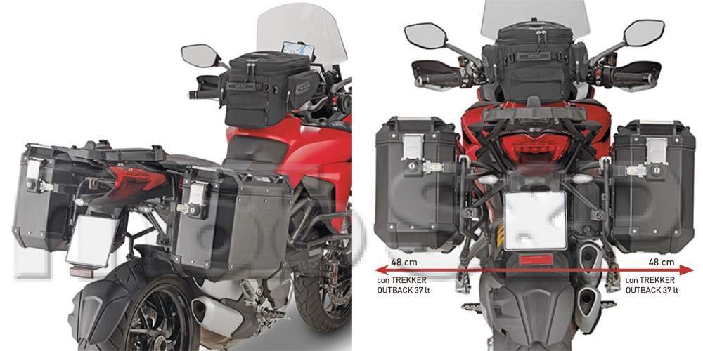 PL ....CAM- trubkový nosič hliníkových bočních kufrů, určeno pro kufry TREKKER OUTBACK. Specifický nosič z trubky průměru 18 mm pro použití v náročných podmínkách. Nosič je demontovatelný díky rychloupínákům. Kufry kupte samostatně v sekci Zboží - kufry GIVI - TREKKER OUTBACK.