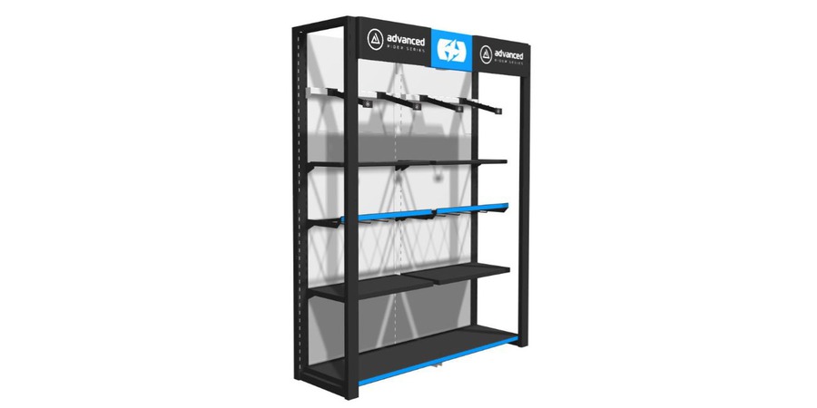 Prezentační stěna na oblečení Premium Advanced pro zavěšení bund a kalhot, 2 moduly, OXFORD (ŠxVxHL = 1760x2300x585 mm)