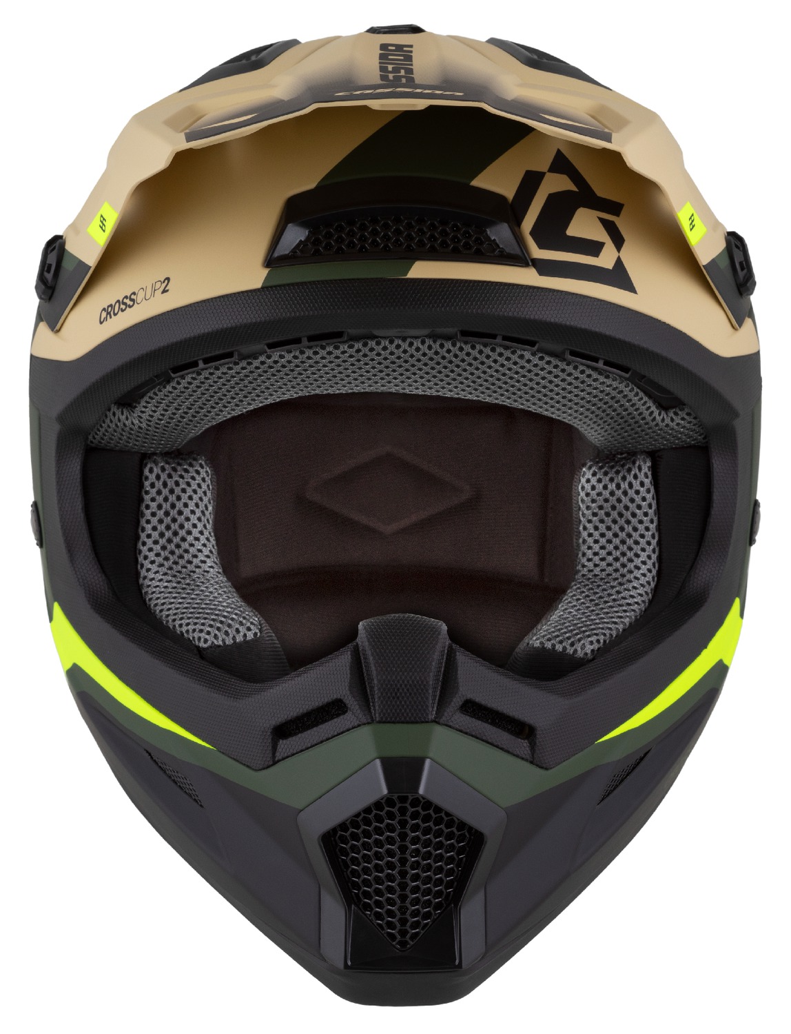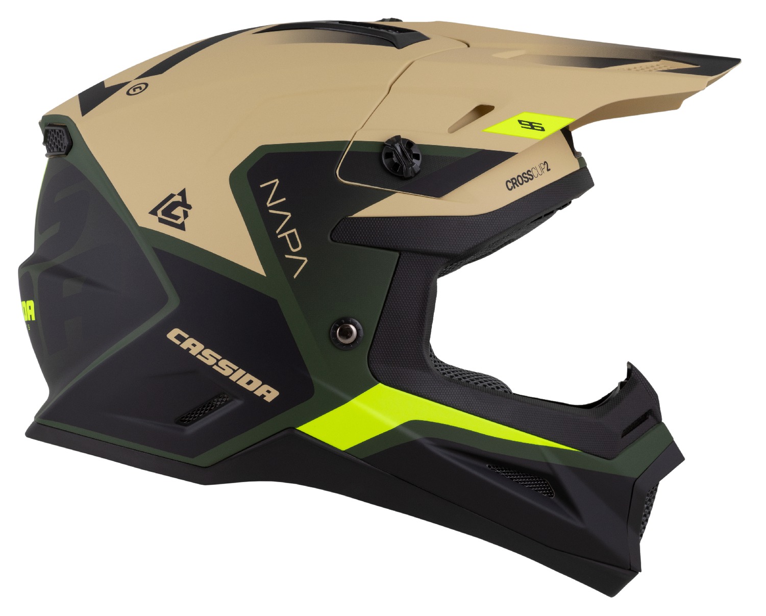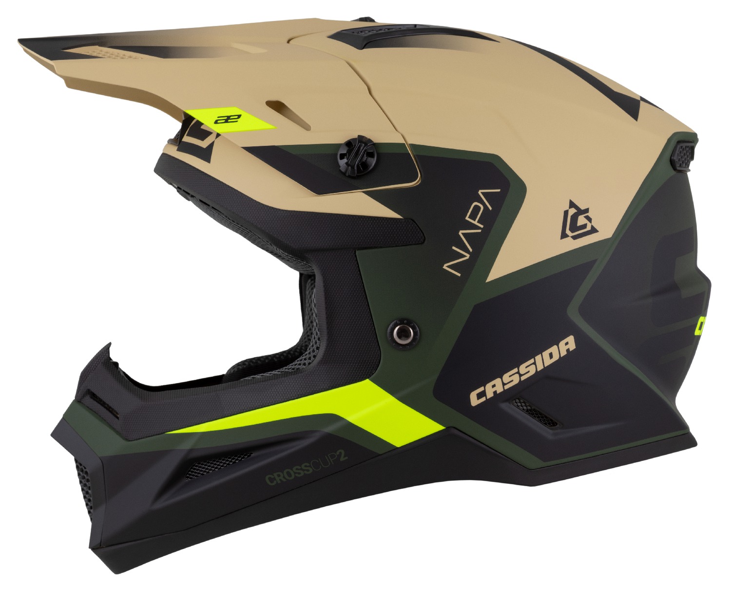 ÚvodHelmyCrossové helmyPřilba Cross Cup 2 Napa, CASSIDA (písková/zelená/žlutá fluo/černá matná) 2026