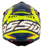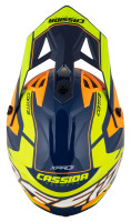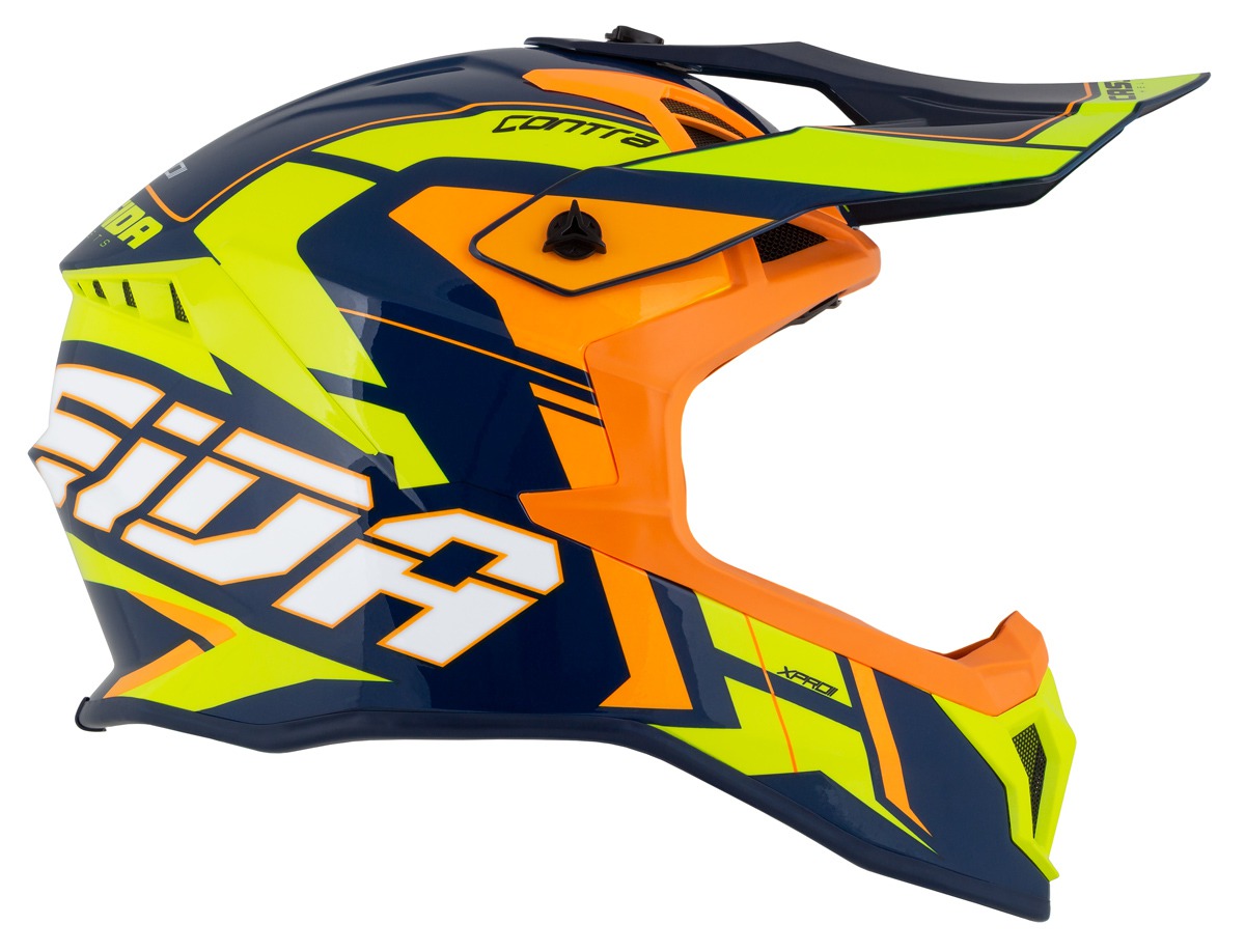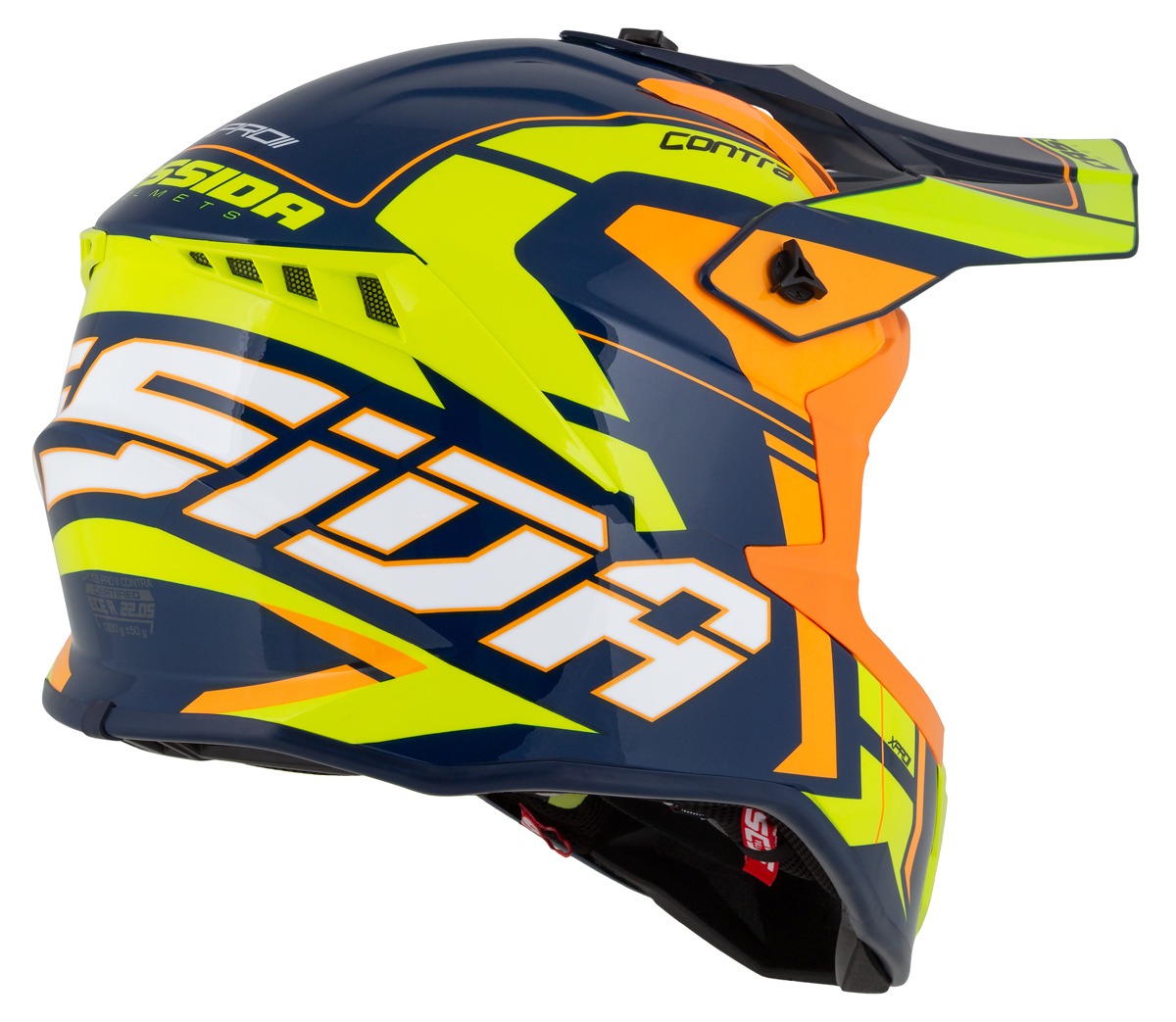 Přilba Cross Pro II je aktuálně nejvyšším motokrosovým modelem od Cassidy v grafické řadě Contra. Skolaminátová skořepina, nastavitelný kšilt s bočními slitinovými a jedním středovým plastovým šroubem pro možnost nastavení polohy a šetrnějšího sklopení kšiltu v případě kontaktu s překážkou. Interiér přilby disponuje nově jako první model v nabídce systémem odnímatelných lícnic Cassida Safety Opening System (Cassida SOS) a tištěnou grafikou interiéru přilby. Dobře omyvatelný vnitřek přilby a ventilační systém s bradovou ventilací disponuje vyměnitelným uhlíkovým filtrem.