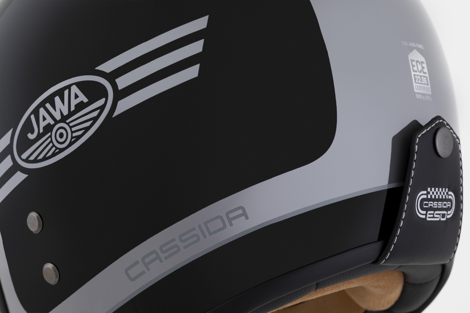 CASSIDA ESO je model otevřené neo retro přilby se sklolaminátovou skořepinou, která disponuje standardy prémiových přileb této kategorie a splňuje bezpečnostní a certifikační standardy současných přileb.