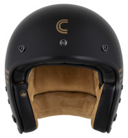 CASSIDA ESO je model otevřené neo retro přilby se sklolaminátovou skořepinou, která disponuje standardy prémiových přileb této kategorie a splňuje bezpečnostní a certifikační standardy současných přileb.