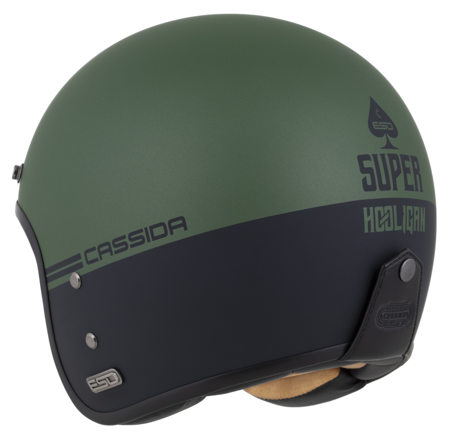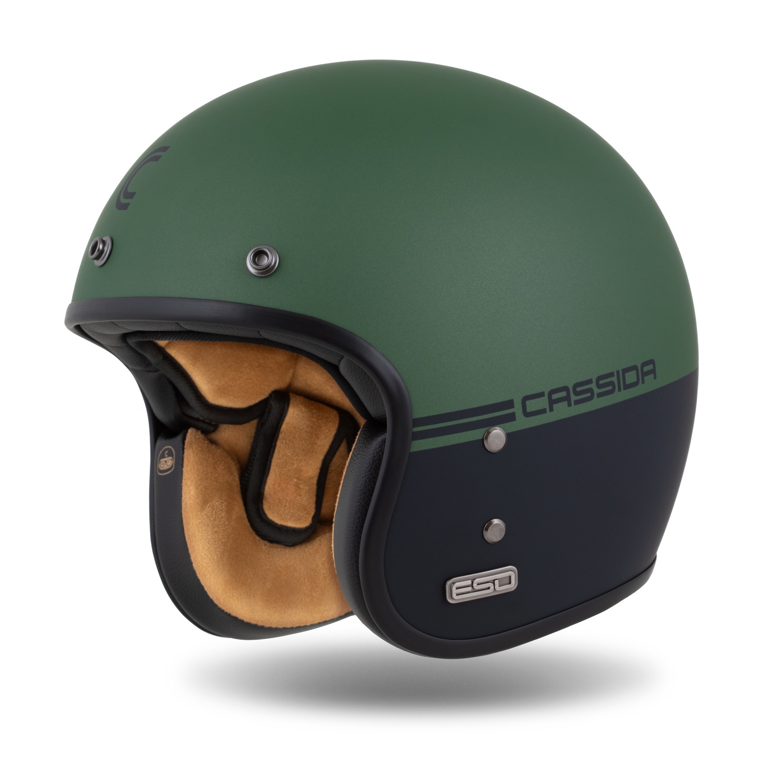 CASSIDA ESO je model otevřené neo retro přilby se sklolaminátovou skořepinou, která disponuje standardy prémiových přileb této kategorie a splňuje bezpečnostní a certifikační standardy současných přileb.