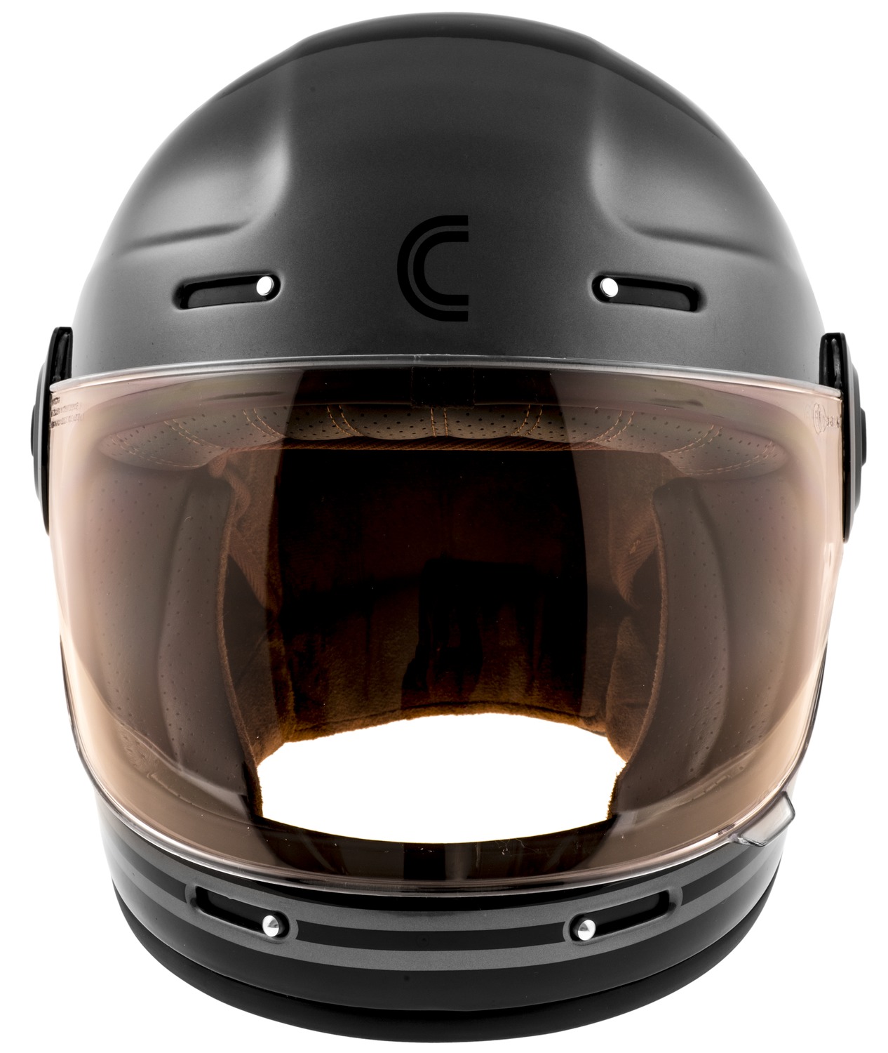 Přilba Fibre je integrální přilba se sklolaminátovou skořepinou, bezpečnostními standardy moderních přileb a vzhledem cíleným na uživatele veteránů nebo kategorie neo retro a moderních klasických motocyklů.