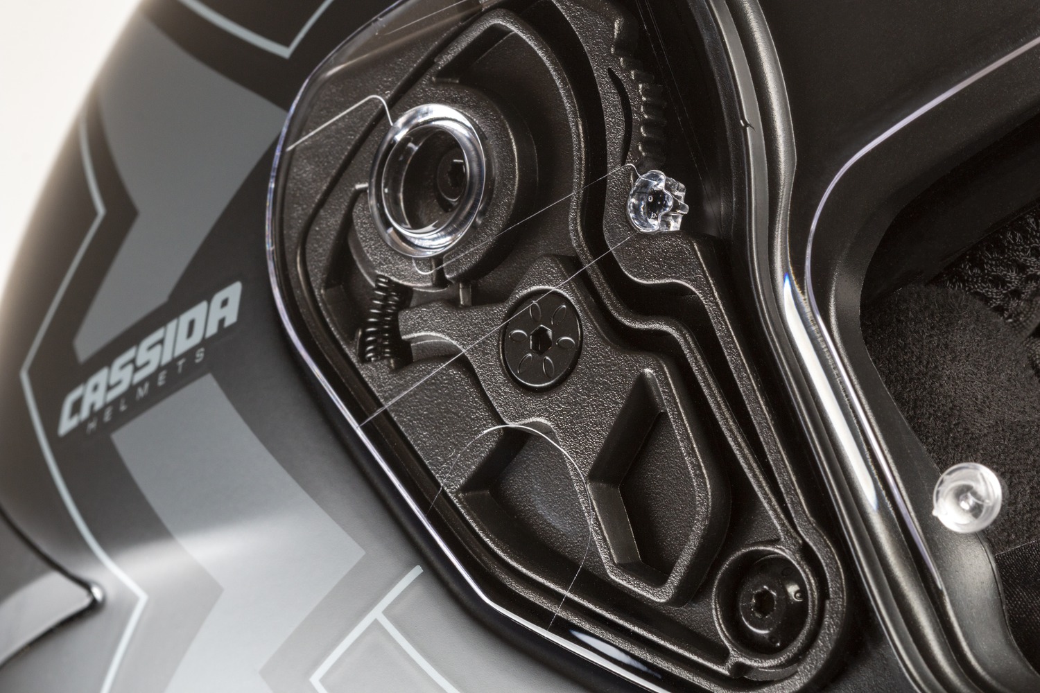 Systém odnímatelných lícnic Cassida Safety Opening System (Cassida SOS).