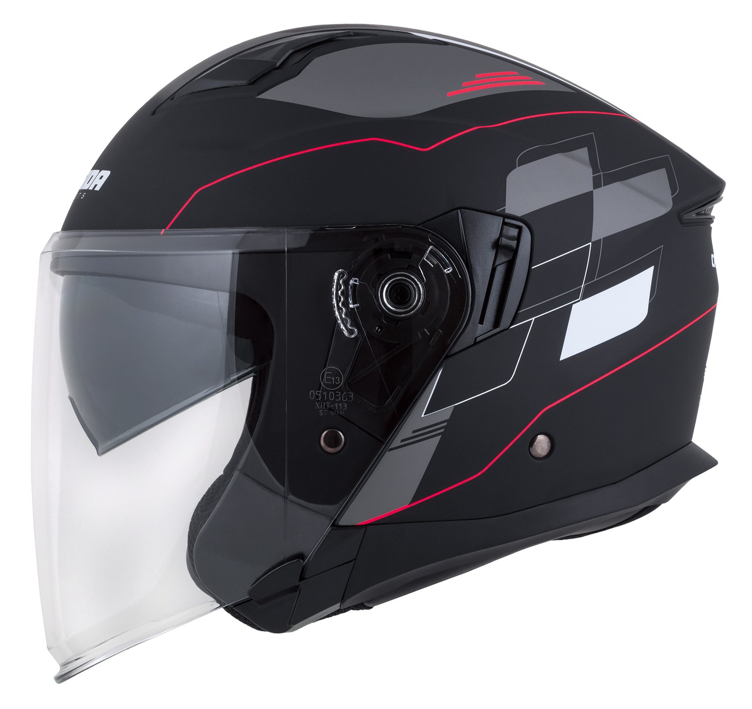 Přilba Jet Tech RoxoR, CASSIDA (černá matná/bílá/červená/šedá)