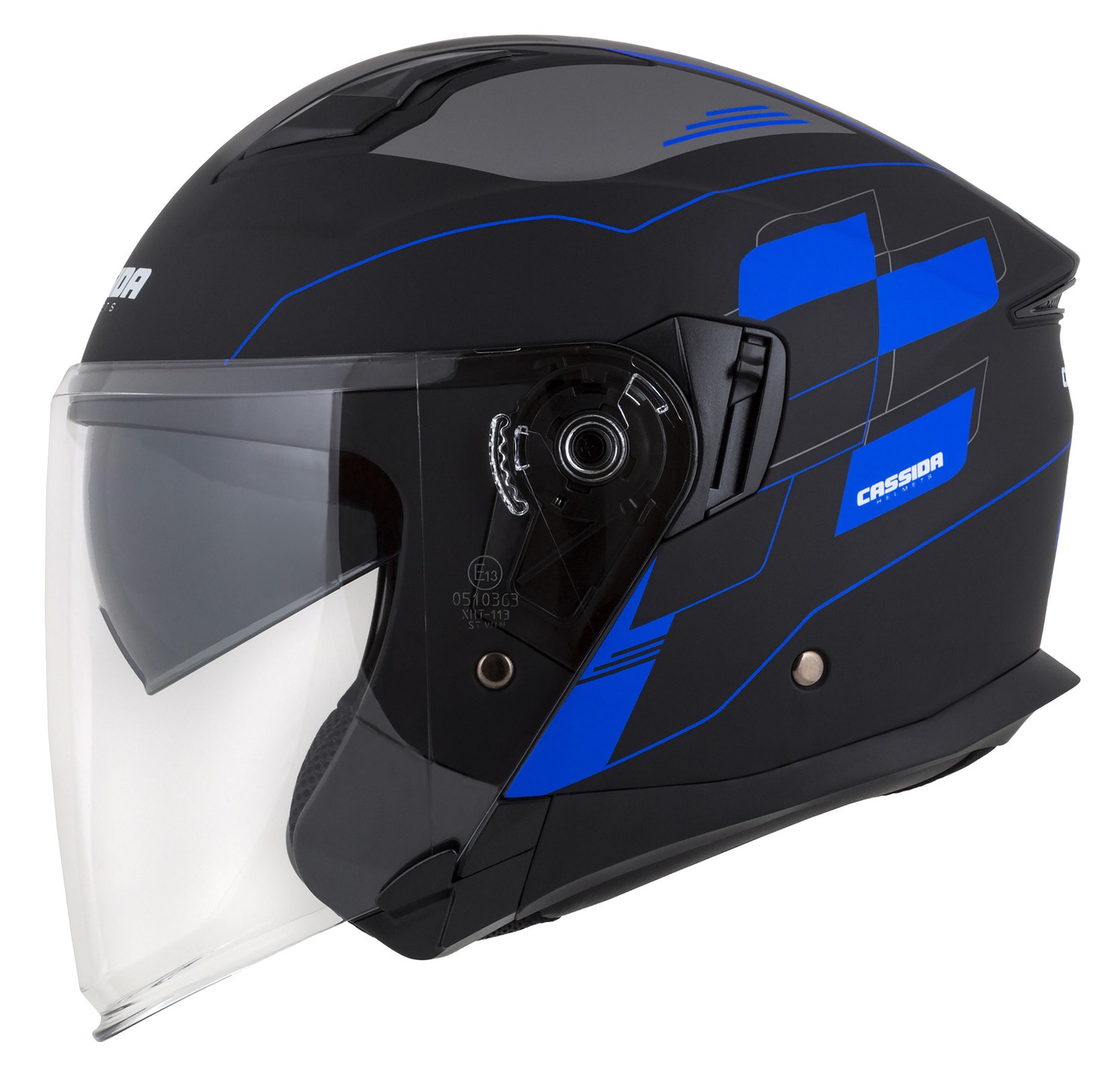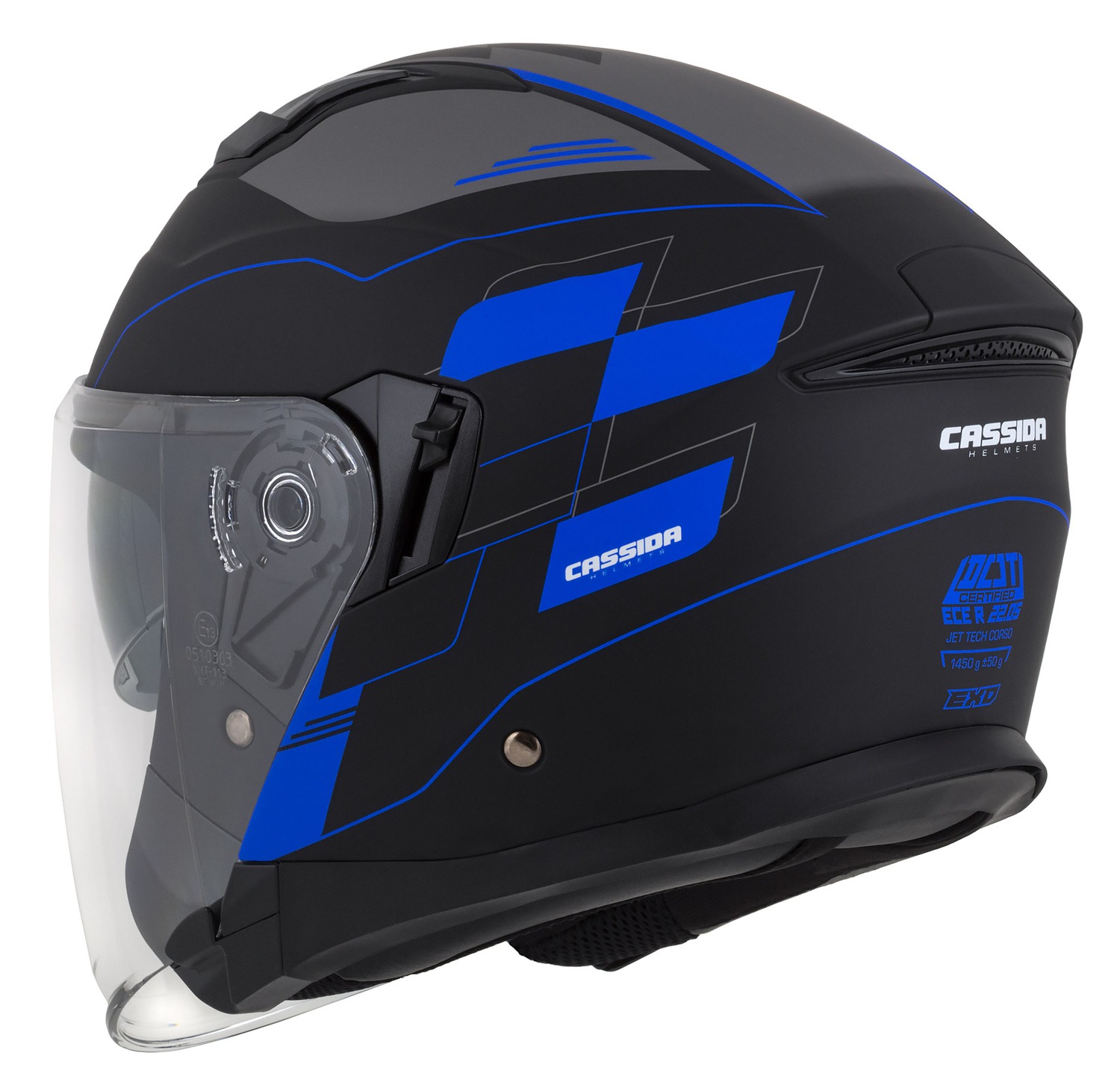 Přilba Jet Tech RoxoR, CASSIDA (černá matná/modrá/šedá/bílá)