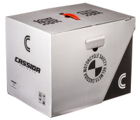 Prémiový obal CASSIDA HELMETS v podobě dvoudílné krabice s madlem.