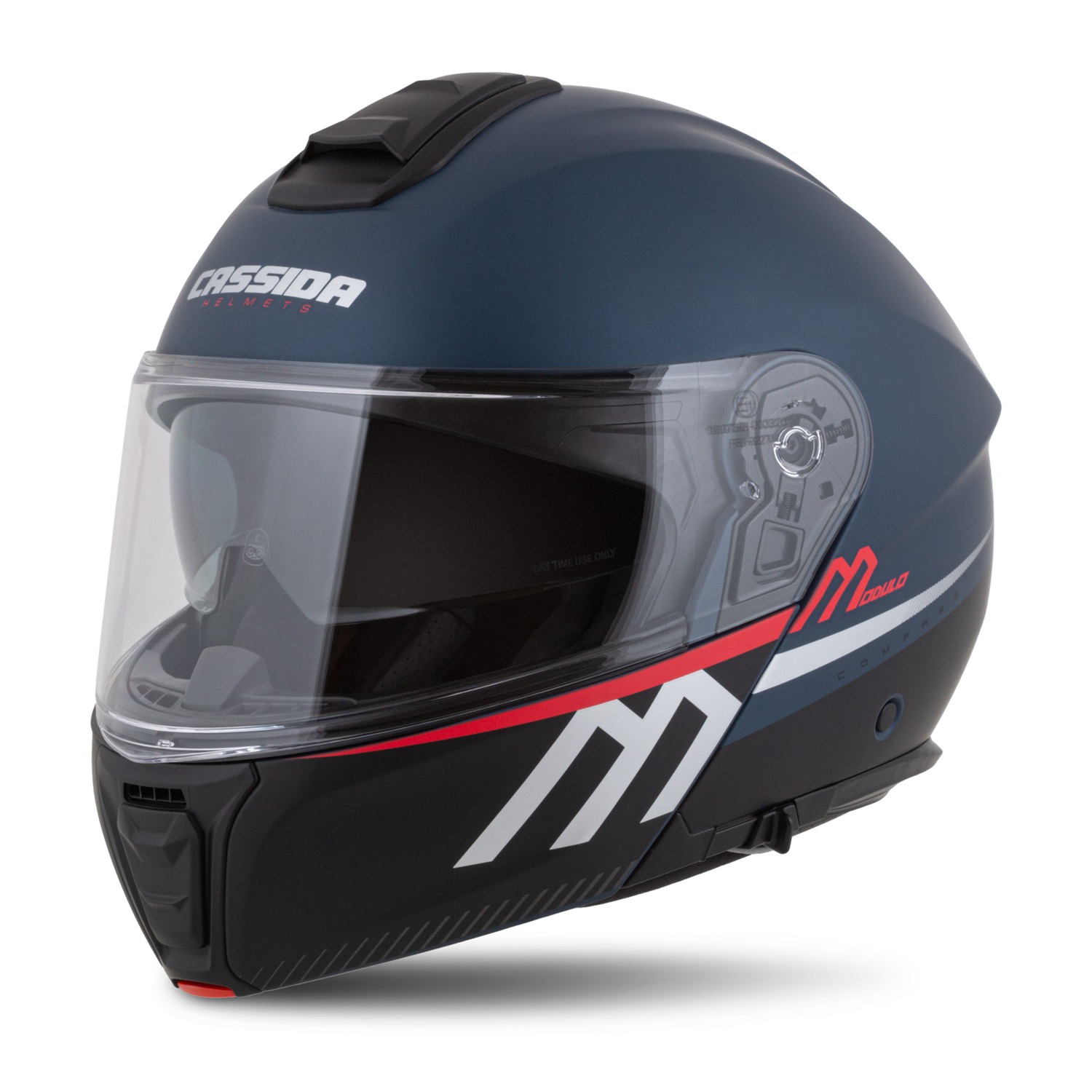 Přilba Modulo 2.1 Compass, CASSIDA (modrá matná perleť/černá/stříbrná/červená, plexi s přípravou pro Pinlock) 2026