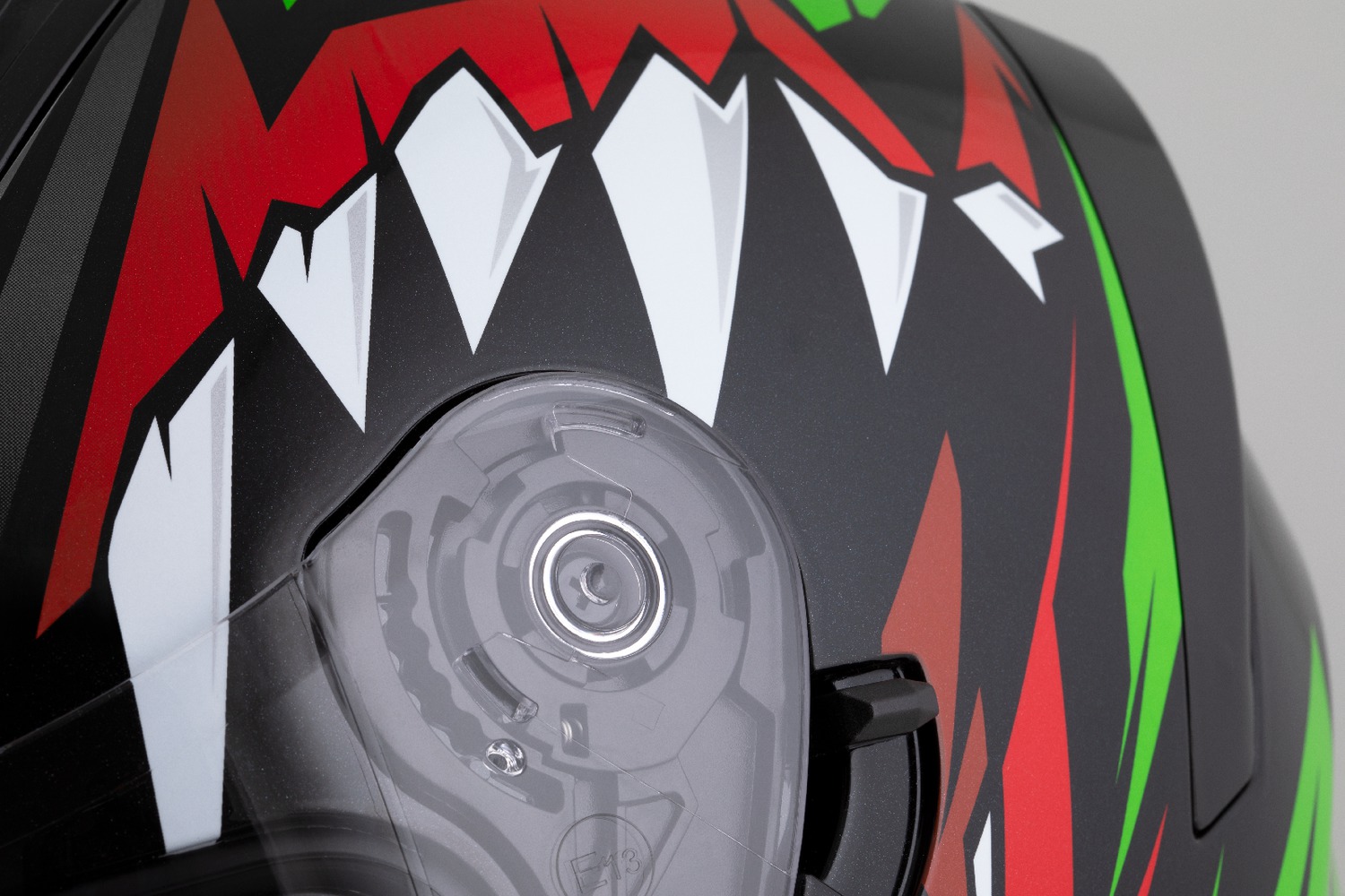 - Rychloodepínací mechanismus plexi s více polohami nastavení pozice a jazýčkem pro docvaknutí plexi v zavřené pozici.
