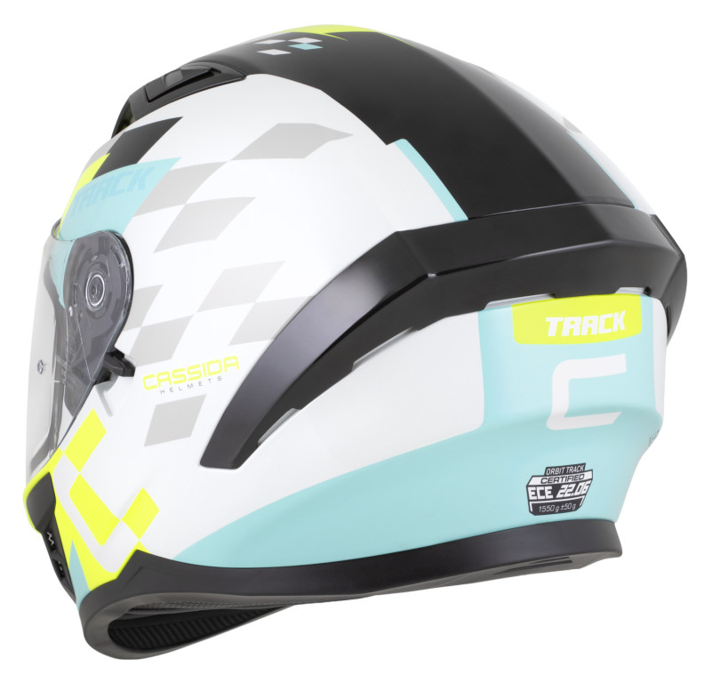 ÚvodHelmyIntegrální helmyPřilba Orbit Track, CASSIDA (bílá/žlutá fluo/tyrkysová/černá) 2026