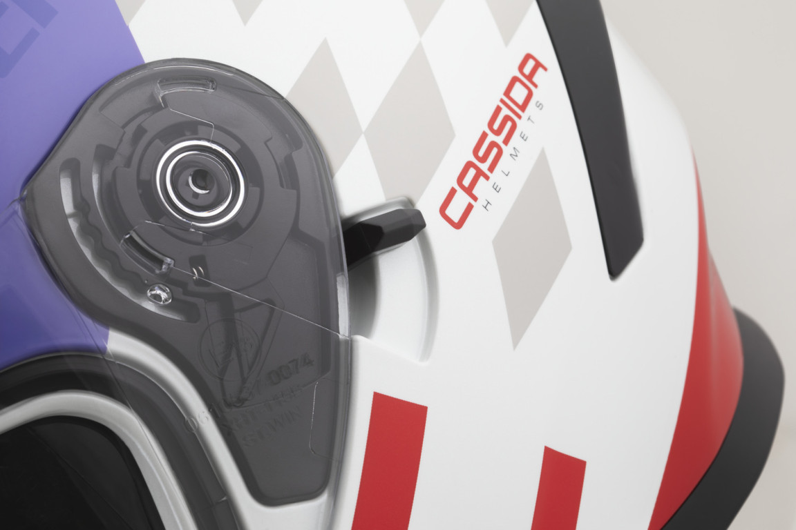 - Rychloodepínací mechanismus plexi s více polohami nastavení pozice a jazýčkem pro docvaknutí plexi v zavřené pozici.