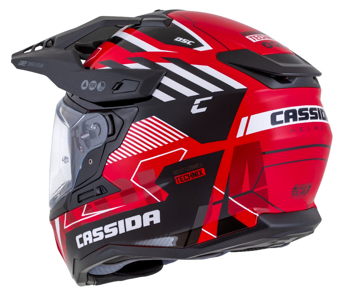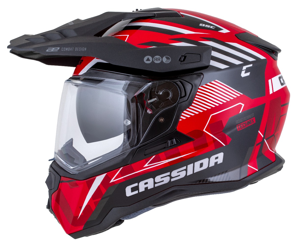 Přilba Road Runner TechniX, CASSIDA (červená/černá/bílá/šedá/černý matný kšilt, plexi s přípravou pro Pinlock) 2026