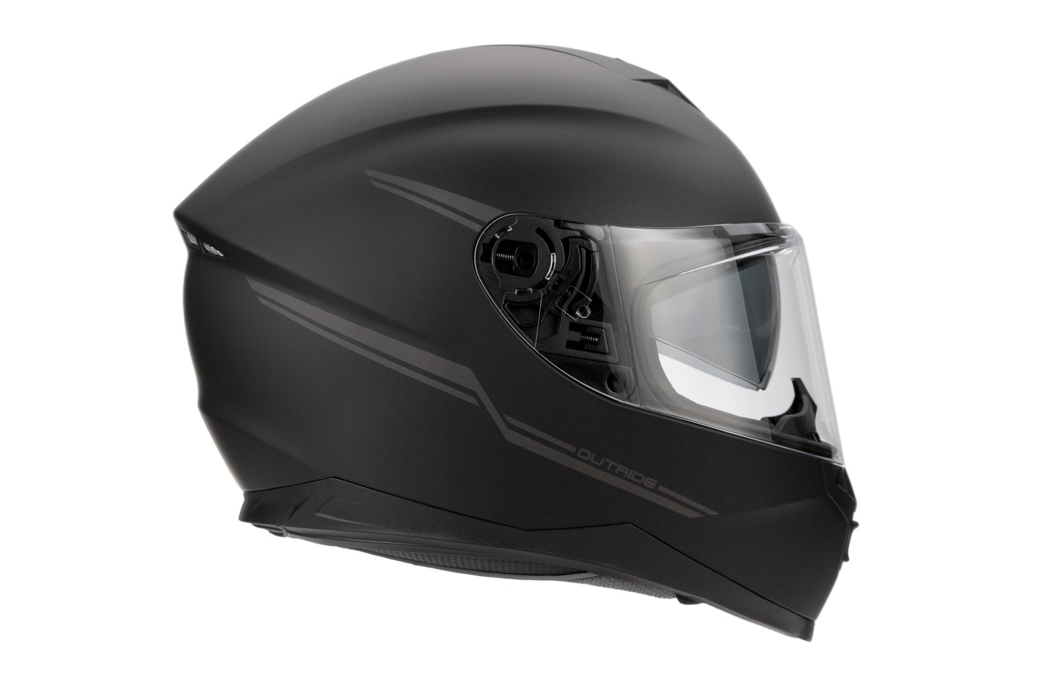 OutRide má certifikaci ECE, středový oválný profil a mikrometrickou přezku pro bezpečné zapínání pod bradou. Přilba je vybavena integrovaným výsuvným hledím pro pohodlnou ochranu před sluncem při jízdě během dne. Přilba OutRide byla navržena s větracími otvory na bradě, na temeni spolu s dalšími týlními větracími otvory. Elegantní třítlačítková ovládací jednotka na levé straně přilby umožňuje intuitivní uživatelské rozhraní, které usnadňuje ovládání během jízdy.