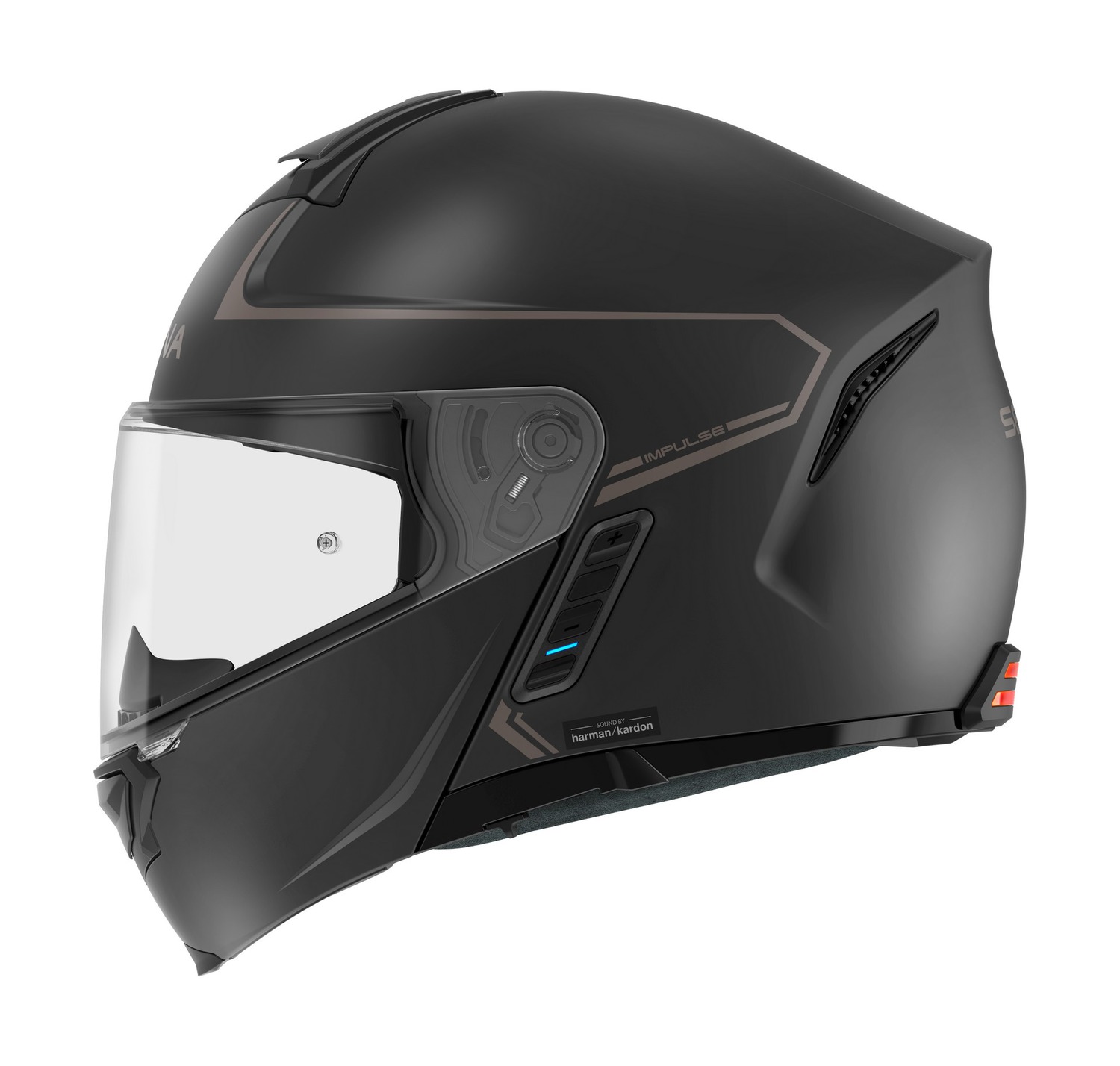 Zcela nová přilba Impulse je modulární inteligentní přilba, vybavená špičkovou technologií Mesh Intercom™ a Bluetooth® Intercom společnosti Sena a prémiovými reproduktory a mikrofonem od odborníků na zvuk ze společnosti Harman Kardon. S pomocí společnosti Harman Kardon přinášejí odborně vyladěné reproduktory modelu Impulse novou úroveň přesnosti a čistoty zvuku v přilbě a zcela nový mikrofon pro bezprecedentní kvalitu odchozího zvuku. Přilba se může pochlubit integrovaným zadním světlem pro lepší viditelnost jezdce a praktickou výsuvnou sluneční clonou. Přilba Impulse byla vyrobena s kompozitní skořepinou ze skelných vláken s certifikací DOT a ECE a má středně oválný střih. Čtyři strategicky umístěné větrací otvory, větrací otvor na bradě, horní větrací otvor a dva zadní větrací otvory umožňují proudění vzduchu během jízdy.