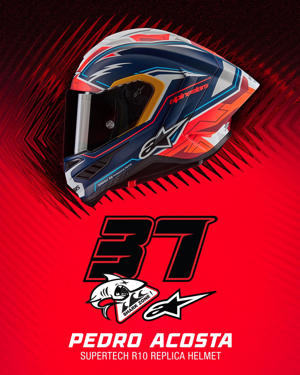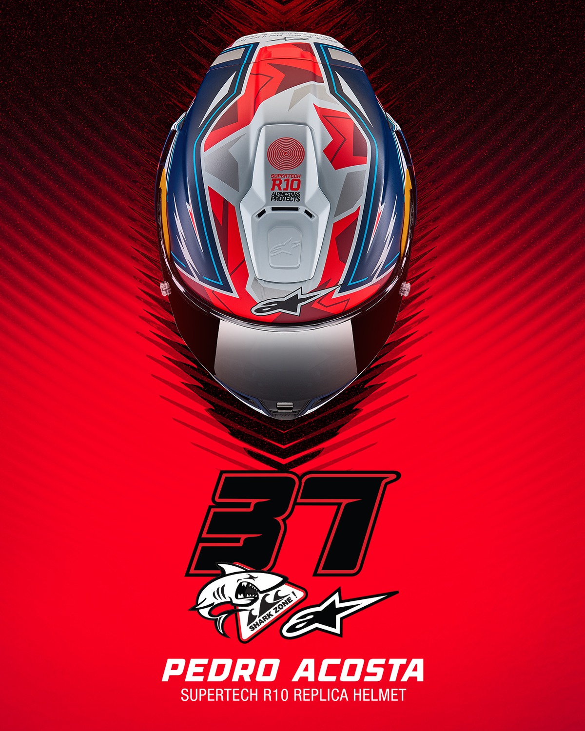 Přilba SUPERTECH R10 limitovaná edice PEDRO ACOSTA, ALPINESTARS (modrá/červená/bílá matná) 2025