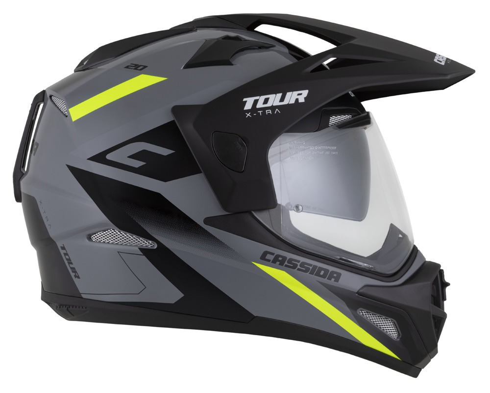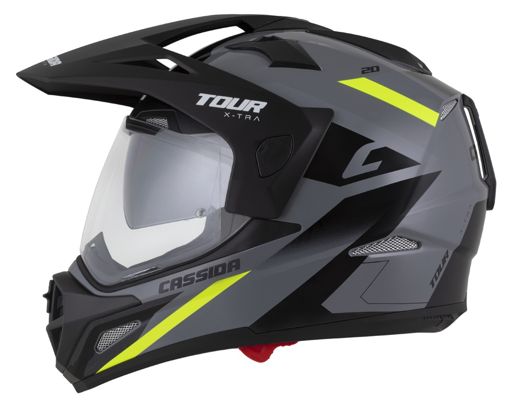 Přilba Tour 2.0 X-tra, CASSIDA (šedá/žlutá fluo/černá/černý matný kšilt, plexi s přípravou pro Pinlock) 2026
