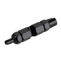 Přípravek pro demontáž jádra ventilků vyrobený z eloxované slitiny hliníku.
