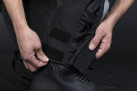 Ventilační otvory v oblasti stehen je možné snadno otevírat a zavírat jednou rukou bez potřeby koukat daným směrem. Díky kvalitním voděodolným zipům a propracovaným dílenským detailům je vyřešena ochrana proti potencionálnímu průniku vody. Poloautomatické zipy zajišťují, že zůstane zip uzavřen v případě, kdy není používán a je plně voděodolný.