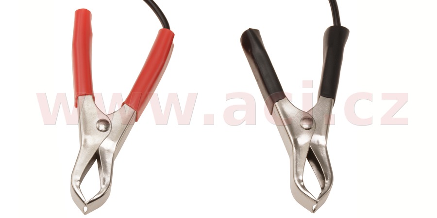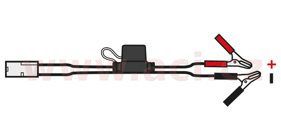 Náhradní kabeláž s klipy typu "krokodýl" a EU adaptérem pro možnost připojení nabíječek s daným konektorem přímo k pólům baterie.