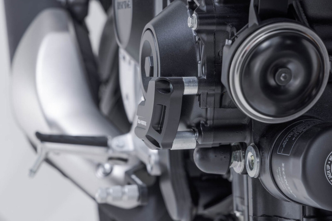 Sada chráničů pro pravou a levou skříň motoru, vyrobená z vysoce pevné hliníkové slitiny. Elegantní design účinně chrání nechráněné části pouzdra před větším poškozením v případě kontaktu se zemí nebo nárazu.