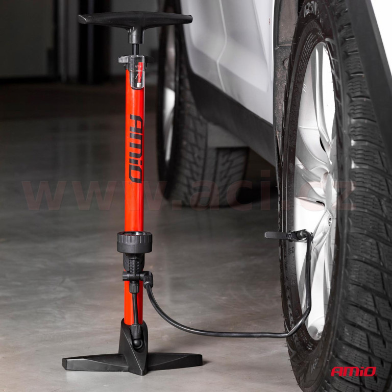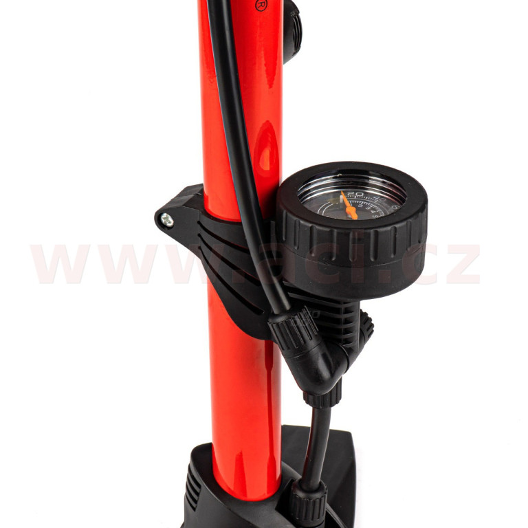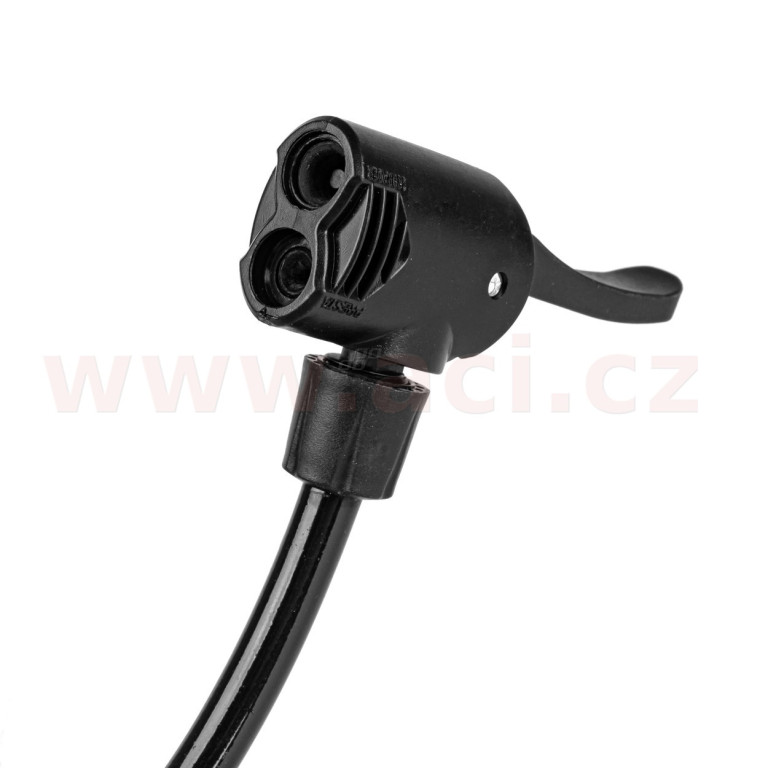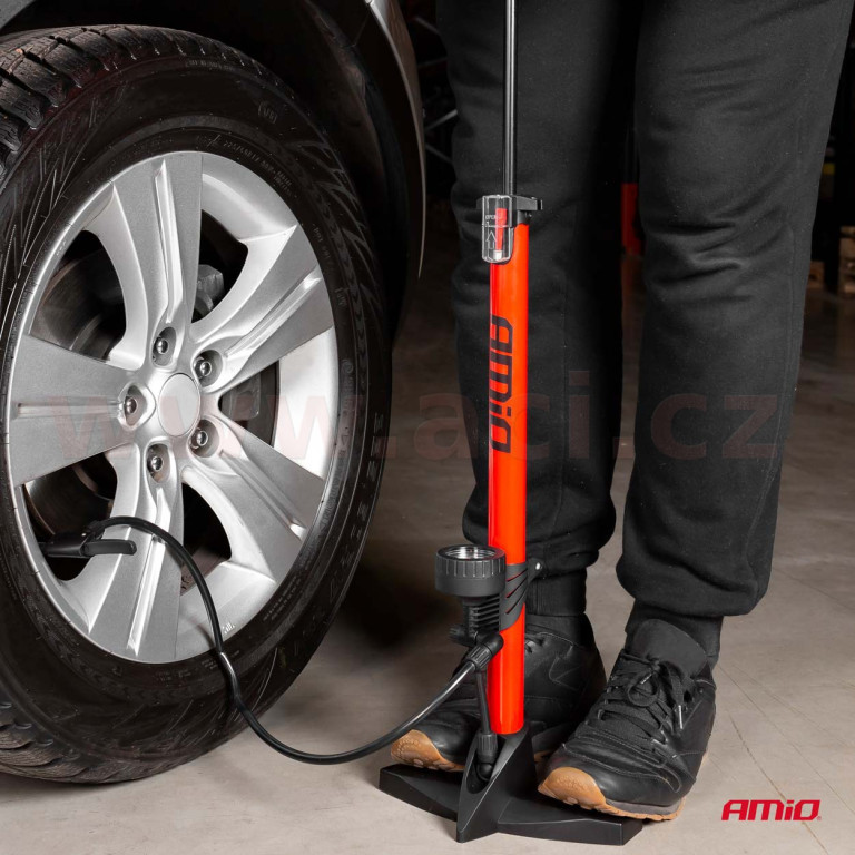 Silná kovová ruční pumpa s maximálním tlakem 11 BAR / 160 PSI. Má dvojitou univerzální hlavu pro ventily automobilů a jízdních kol. Navíc je součástí balení adaptér a jehla pro pumpování matrací, míčů, nafukovacích hraček atd.