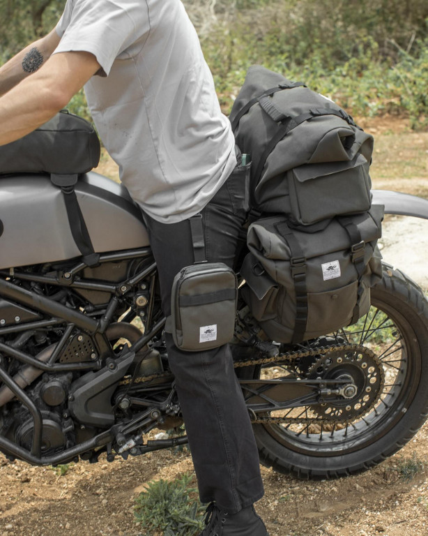 Textilní brašna na nohu - šedo-zelená.