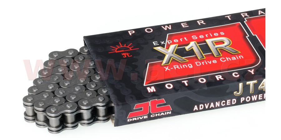 Délka čepu: 20,8 mm Tloušťka plátku vnitřní: 2 mm Tloušťka plátku vnější: 2 mm Maximální pevnost v tahu: 27,5 kN Hmotnost 100 článků: 1,12 kg Spojovací článek: rozpojovací Typ těsnícího kroužku: x-kroužek Max. kubatura road / off road (ATV): 250 / 200 ccm Popis: X1R (Heavy Duty X-Ring Chain) je motokrosový x-kroužkový řetěz, vhodný i pro silniční motocykly a ATV malých kubatur