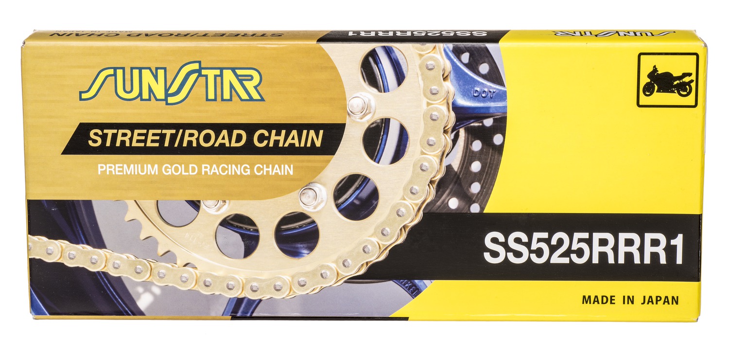 řetěz 525RRR1, SUNSTAR (x-kroužek, barva zlatá, 122 článků)
