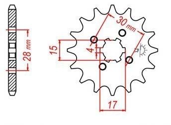 řetězové kolečko pro sekundární řetězy typu 420, JT - Anglie (16 zubů)