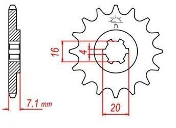 řetězové kolečko pro sekundární řetězy typu 420, JT - Anglie (16 zubů)