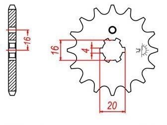 řetězové kolečko pro sekundární řetězy typu 420, JT - Anglie (16 zubů)
